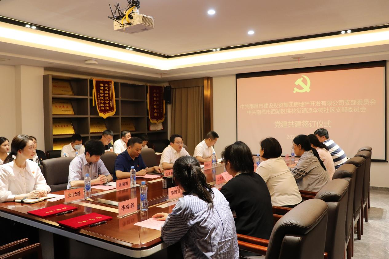 为起劲探索立异党建事情新模式,,,,,,,探索团结党建新路径,,,,,,,起劲形成组织共建、资源共享、生长共商的党建事情新时势,,,,,,,6月9日,,,,,,,南昌市建设投资集团房地产开发有限公司党支部与南昌市西湖区桃花街道凉伞树社区党支部举行了党建共建签约仪式。。。。。。公司党支部委员、总司理万勇林,,,,,,,党支部委员、副总司理何强科,,,,,,,总司理助理吴瑞雪、手艺照料陈保福出席,,,,,,,双方单位共16名党员加入。。。。。。