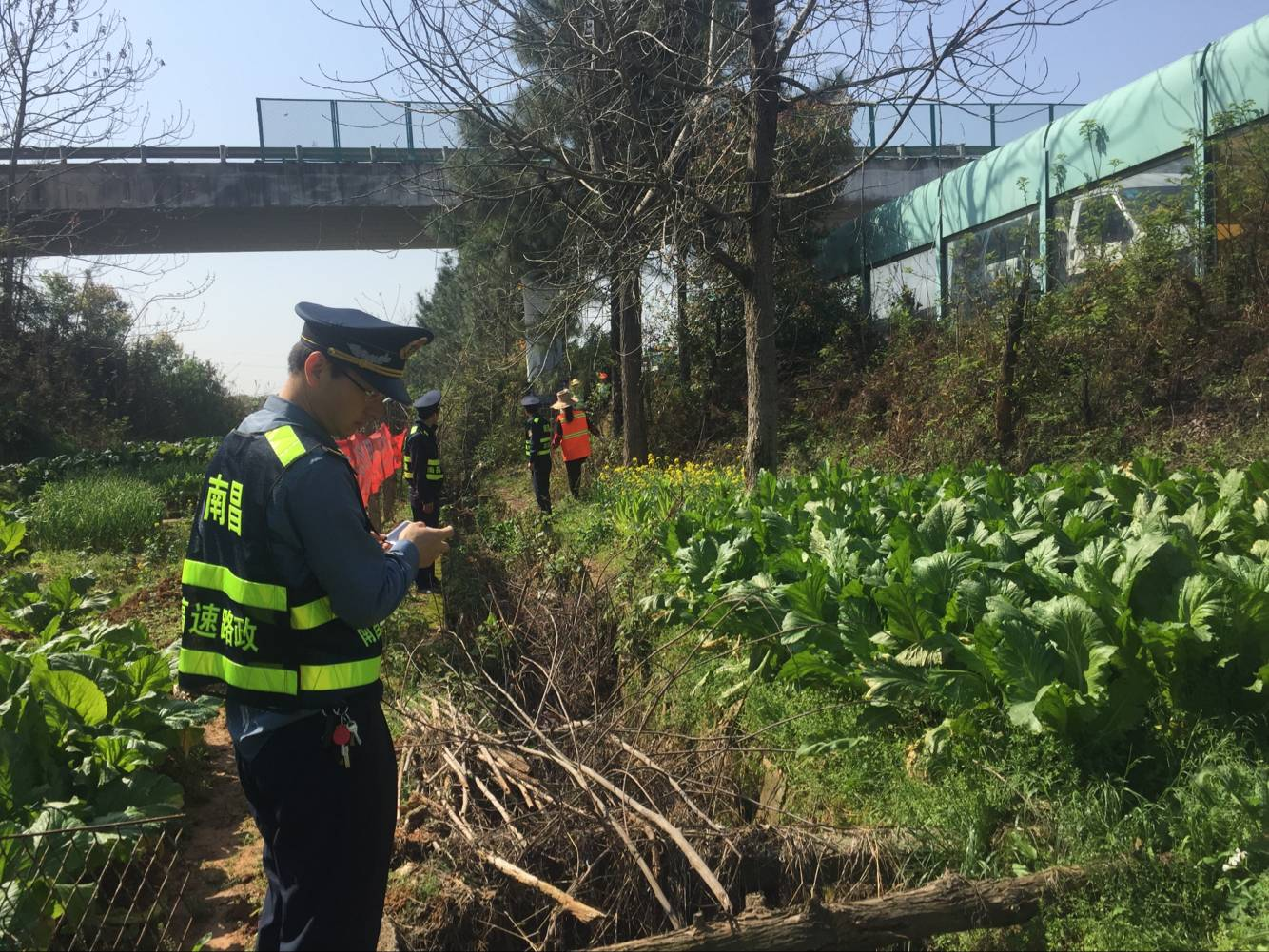 为了确保路域情形整治事情取得实效,,,,,,3月尾4月初,,,,,,南昌高速公路有限公司团结南昌高速公路路政管理支队四大队,,,,,,开展新一轮路域情形整治事情,,,,,,在西外环高速K20-K38段开展严禁不法占用高速公路用地、隔离栅区域内莳植蔬菜、苗木等专项治理。。。。。。。主要整治点有K21+900西幅、服务区西幅通道口西幅、K29+000西幅、K30+400东幅、K30+200东幅、K28+980东幅、K28+900东幅、K21+900东幅边坡及隔离栅区域内等。。。。。。。